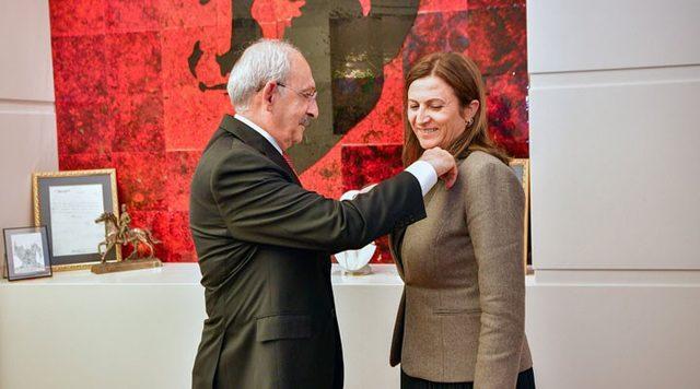 CHP’ye katılan Türkan Elçi’nin rozetini Kılıçdaroğlu takmıştı.